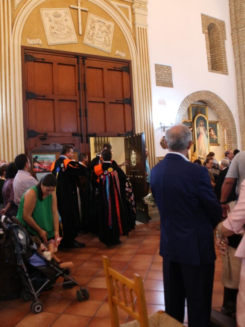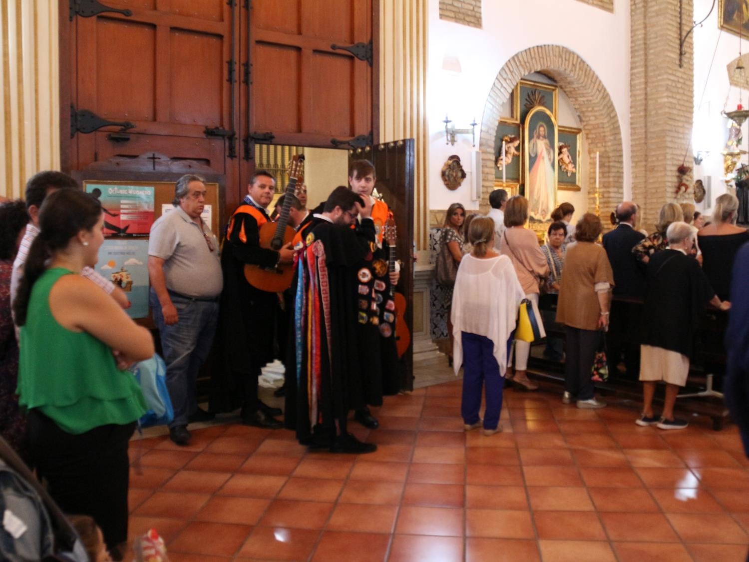 Al terminar la misa,la Tuna de la Facultad de Empresariales amenizó el paseo hasta la entrada por calle Palos para pasar al convite en el patio.